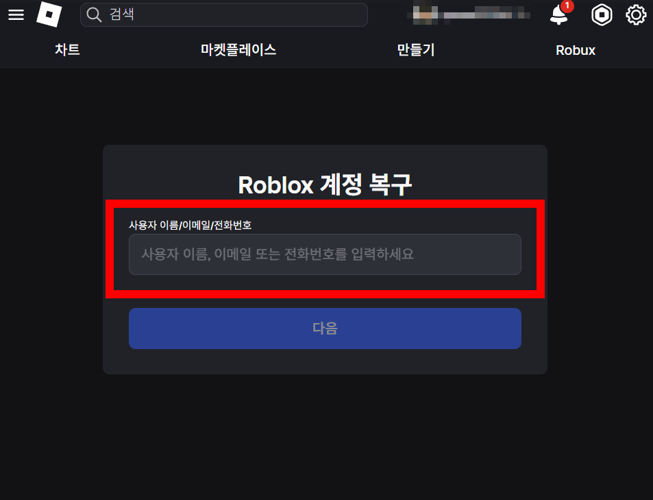 1. 로블록스 비밀번호 찾기 (비밀번호 잃어버렸을 때)