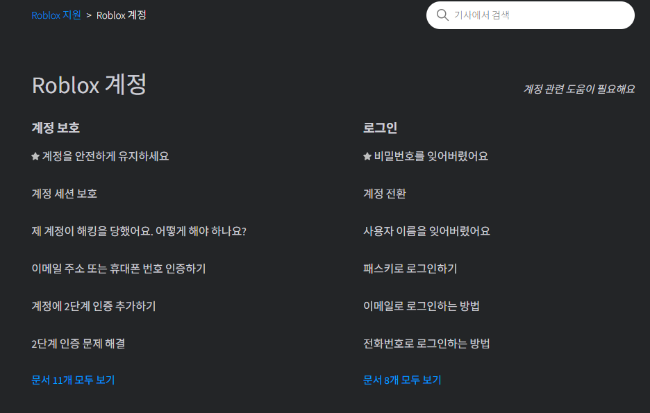 - 위 방법으로 해결되지 않으면 Roblox 지원 센터 문의