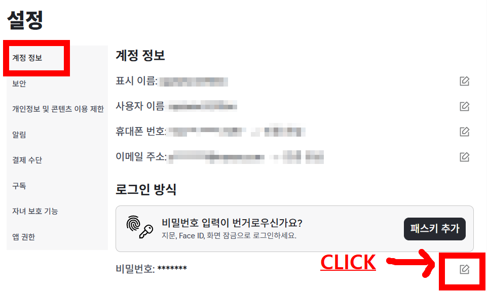 - 계정 정보 클릭