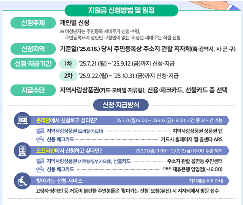 - 2차: 2025년 9월 22일 ~ 10월 31일 (소득 선별 후 지급)