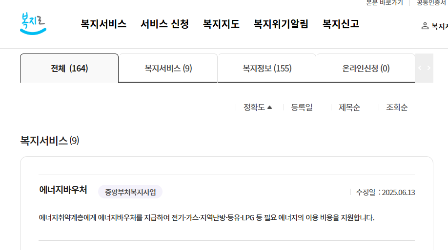 - ‘복지서비스’ → ‘에너지바우처 신청’ 메뉴 선택