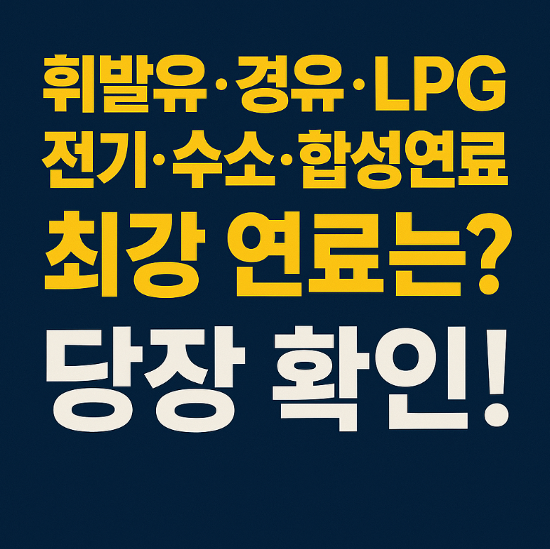 휘발유, 경유, LPG, 전기차, 수소차, 그리고 최근 주목받는 합성연료까지 — 각 연료의 연비, 주유 방식, 차량 가격, 장단점까지 2025년 기준 최신 데이터로 정리했습니다.