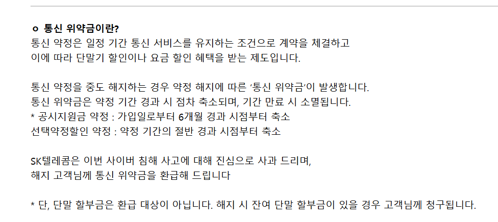 - 유심정보 유출 피해자 중 해지 후 위약금 납부자